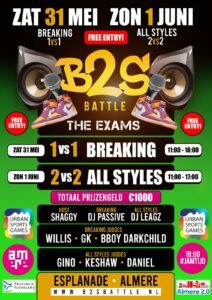 De vierde editie van de Urban Sports Games vindt plaats van 30 mei tot en met 2 juni 2024 in Almere Centrum. We hebben weer een geweldig programma met workshops, demonstraties en (inter)nationale wedstrijden voor amateur en pro. Deelname aan de onderdelen is gratis en op eigen risico. Klik op de banners hieronder voor meer informatie over de onderdelen. Het cultuurprogramma wordt mede mogelijk gemaakt door Almere 2.0, Cultuurfonds Almere en Kunstlink.